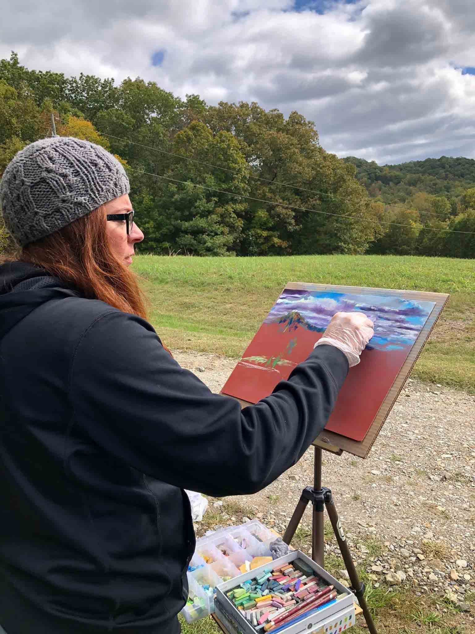 Jennifer Millard paints en plein air, capturing the essence of Kentucky’s wild lands, skies and waterways. Her landscape paintings are vibrant, delicate, and detailed.